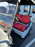 This Club Car Tempo features a refreshed look with striking red seats and dependable lead-acid power. Designed for simple, everyday use, it offers essential features and reliable performance.