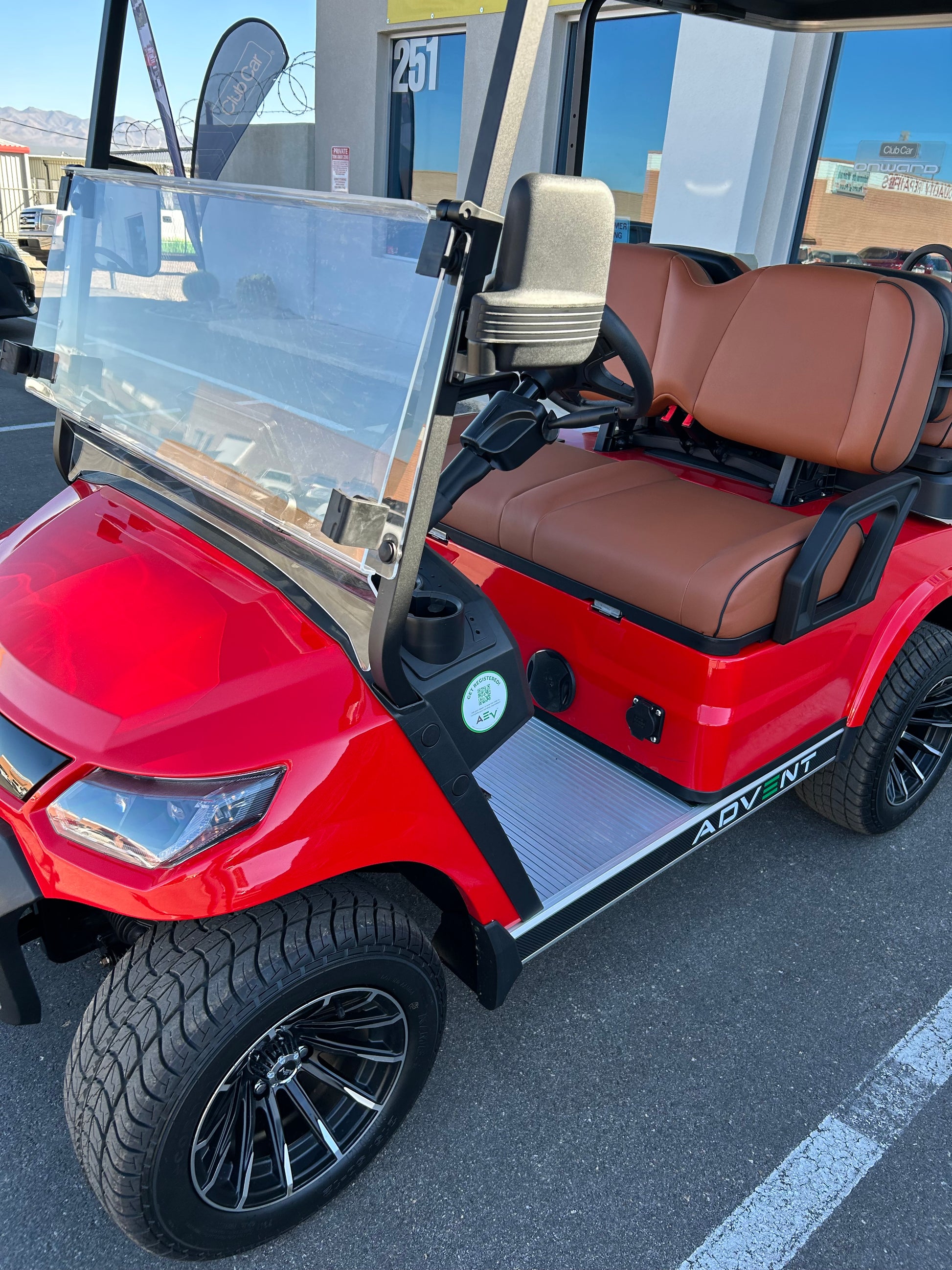 ADVANCED EV ADVENT 4 - RED - 105 AMP B LITH BATTERY DIGITAL DASH WITH BACK UP CAMERA AND RADIO; SIDE MIRRORS, LOCKING GLOVE BOXES, UNDER SEAT COMPARTMENT, UPGRADED SEATS AND FOLDING WINDSHIELD.