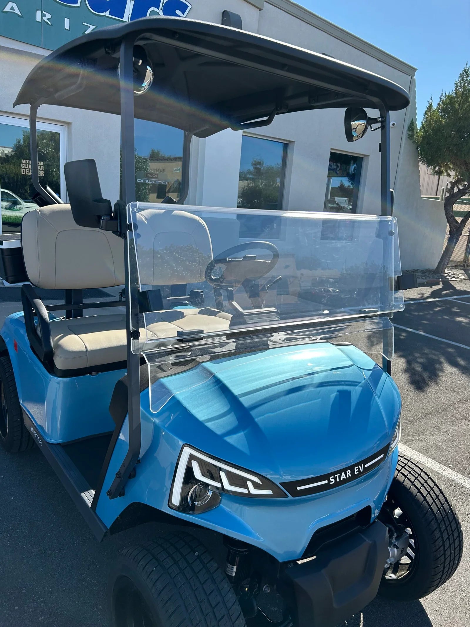 The 2026 Star EV J 2 in Blue delivers a perfect blend of performance, safety, and style. Powered by a 105 Amp lithium battery, this two-passenger cart features a folding windshield, digital dash with backup camera, Bluetooth speakers, and full safety lighting. Sleek, quiet, and efficient, it’s built for everyday comfort whether you’re cruising the neighborhood or driving the course.